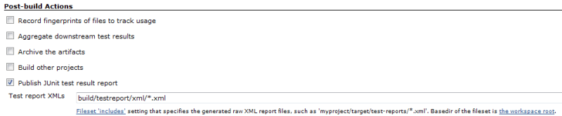 config/cucumber.yml. - Now, all you have to do in Hudson/Jenkins is to configure a job launching your build as usually. Pass correct parameters and publish Cucumber test results along with other automated test results: