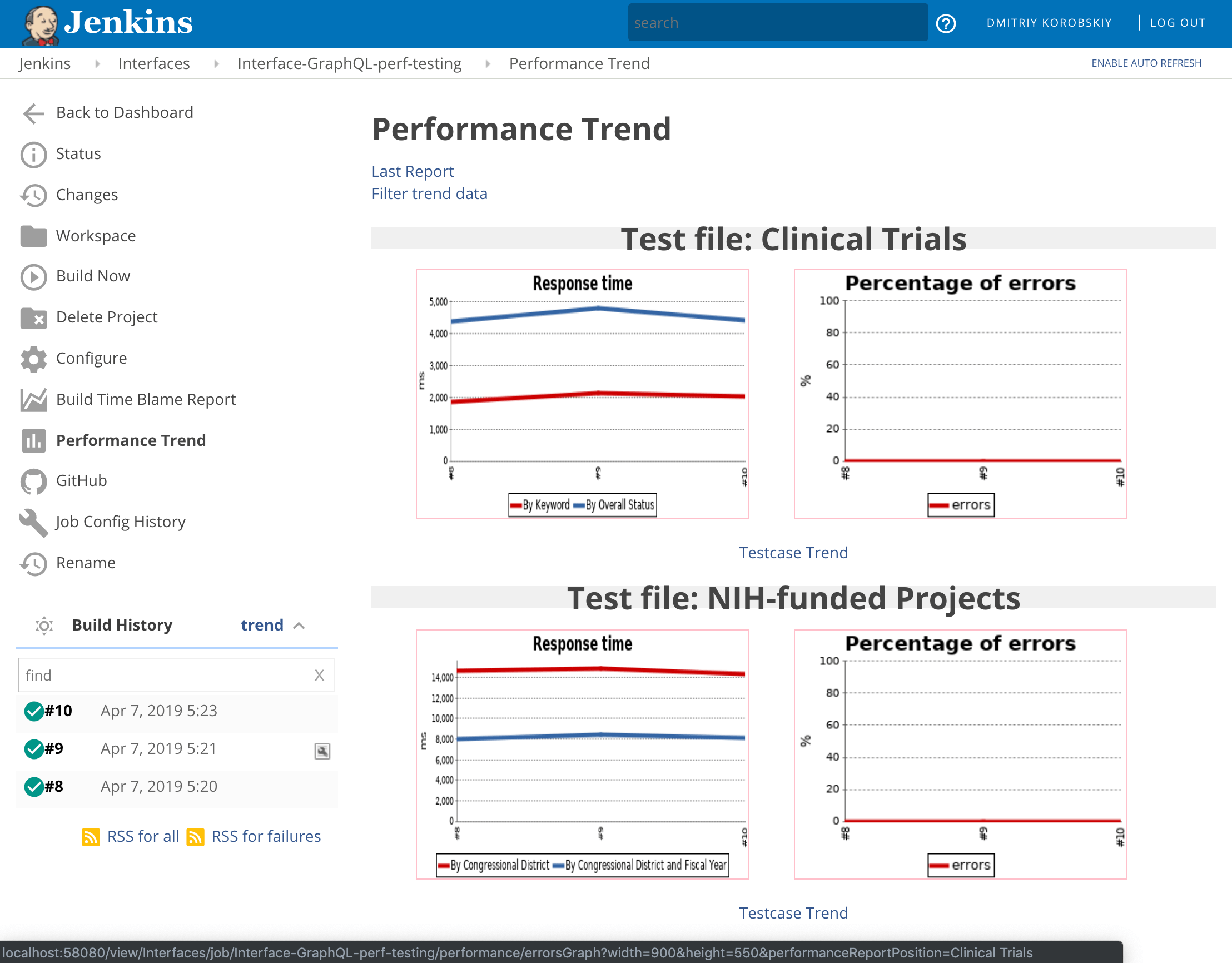 - If there is a single data file, its charts are published on the main job page. If there are several reports, charts could be found on the job’s Performance Trend page, ordered by titles.